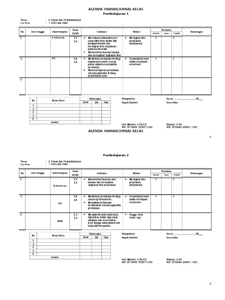 untuk "12+ Agenda Harian Guru Sd Kelas 6 Ktsp Pictures"