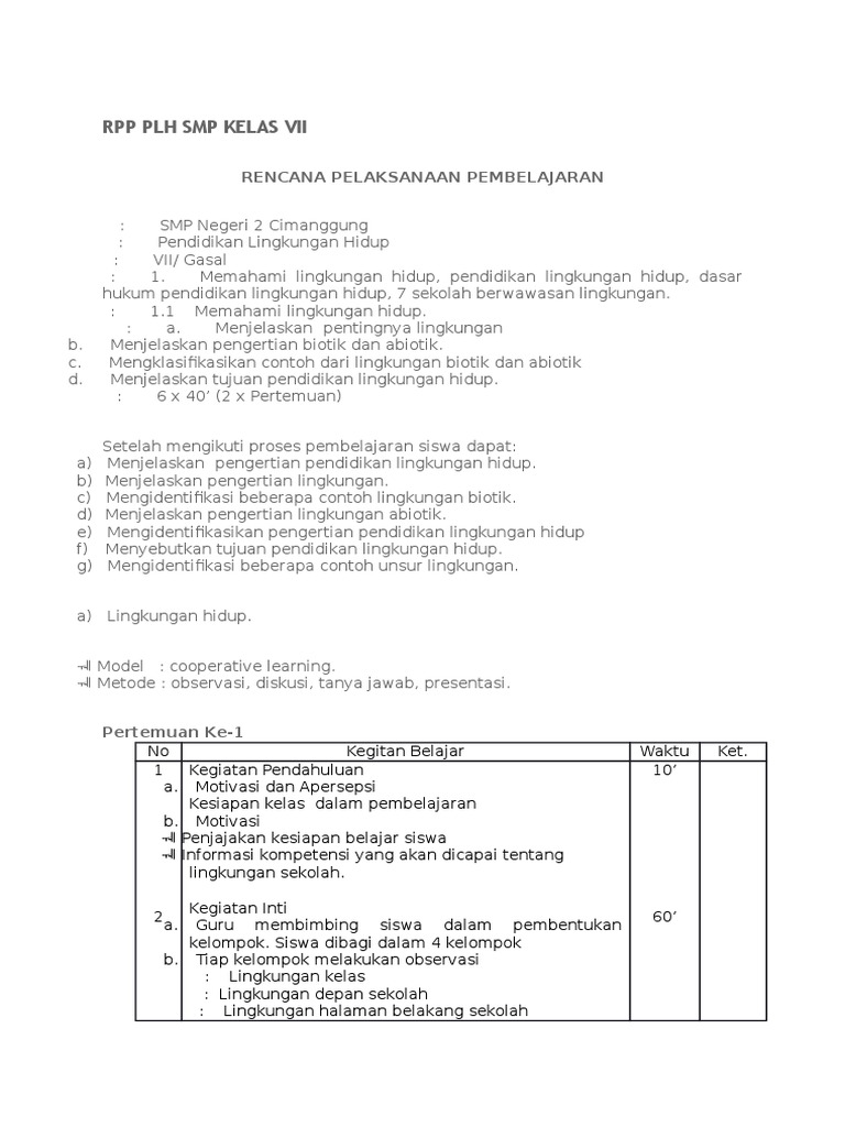 Perangkat Pembelajaran Pendidikan Lingkungan Hidup Plh Kelas Vii Viii Ix