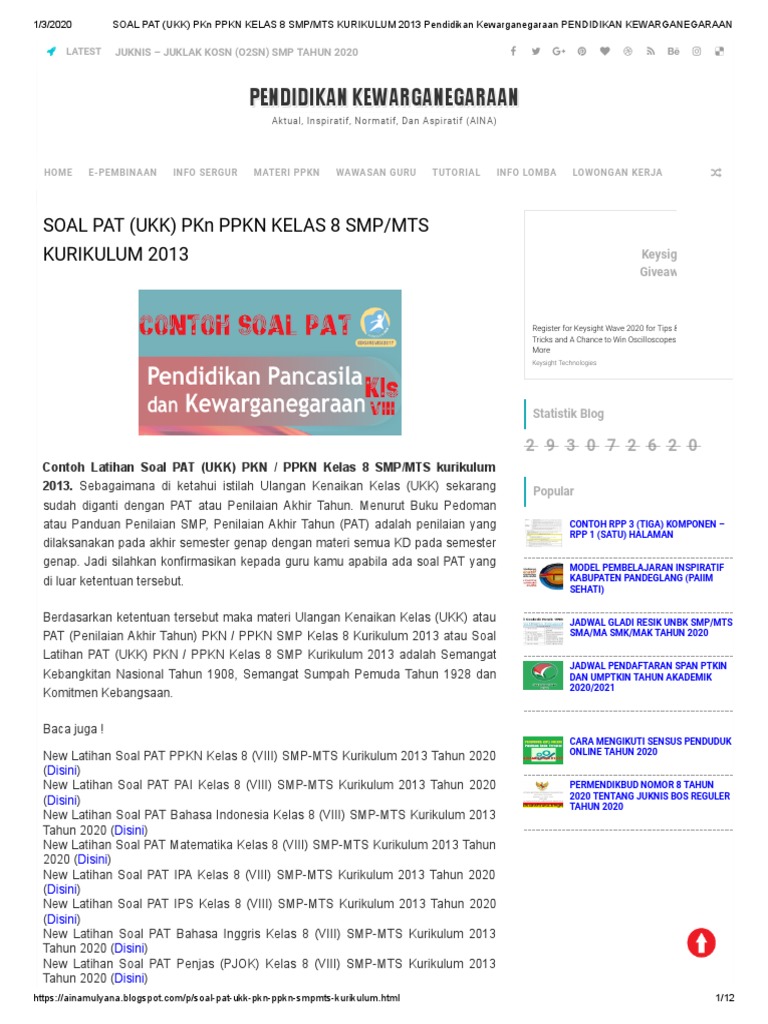 View Soal Ukk Pkn Kelas Viii Smp Mts Genap 2020 2021 2022