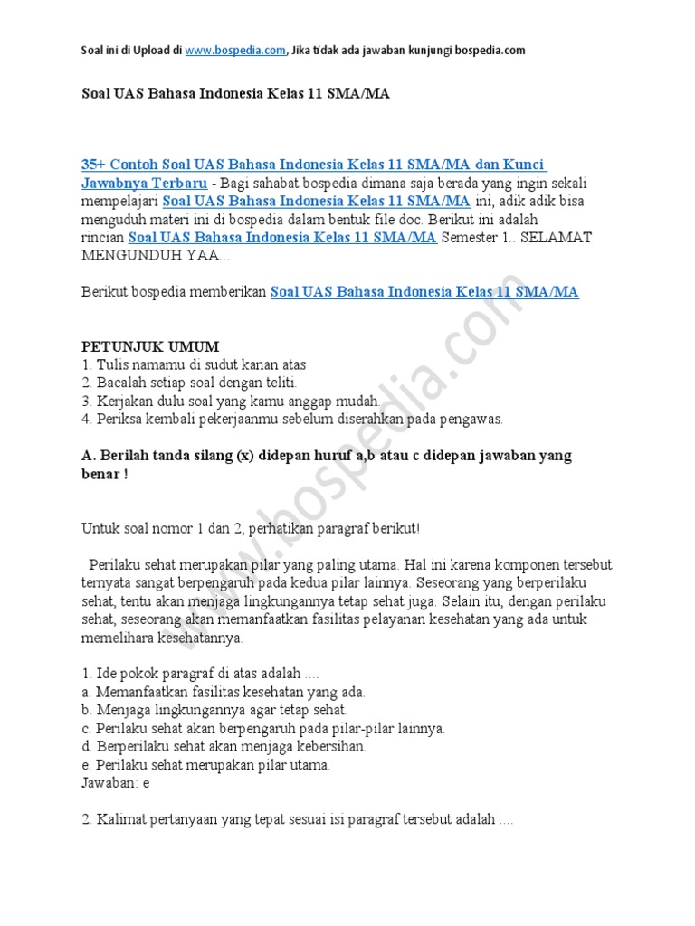 Get Soal Ukk Uas Bahasa Indonesia Kelas Xi Sma Ma Genap