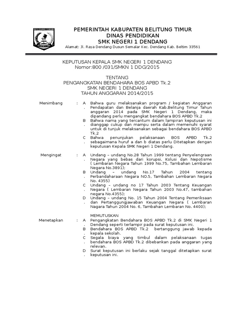 Contoh Sk Bendahara Dana Bos Sekolah Guru Ilmu Sosial from 1.bp.blogspot.com Selanjutnya masuk ke data rinci ptk yang menjadi bendahara, cek pada tugas tambahan pastikan jabatan telah dipilih bendahara bos, isikan sk dan. Tugas bendahara dalam organisasi, seperti yang kita tau bawa tugas bendahara organisasi adalah mengelola keuangan organisasi. Hampir semua orang juga sudah tidak asing dengan istilah bendahara dan menganggap mereka sebagai pengurus keuangan, baik itu di level organisasi kecil, perusahaan, atau bahkan negara.