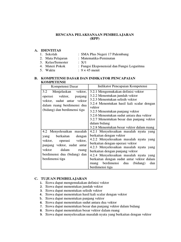 Download Rpp Vektor Matematika Peminatan Kelas 10 Semester 2 Pics. Contoh rpp 1 lembar matematika peminatan sma/ma kelas 10 semester 2 kurikulum 2013 revisi 2019/2020. Rencana pelaksanaan pembelajaran (rpp) adalah pegangan seorang guru dalam mengajar di dalam kelas.