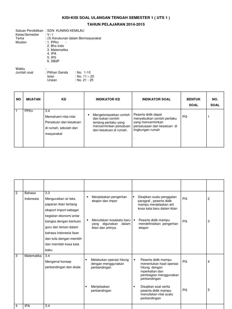 Soal Pts Tematik Kelas 5 Semester 1 Research Papers Academia Edu