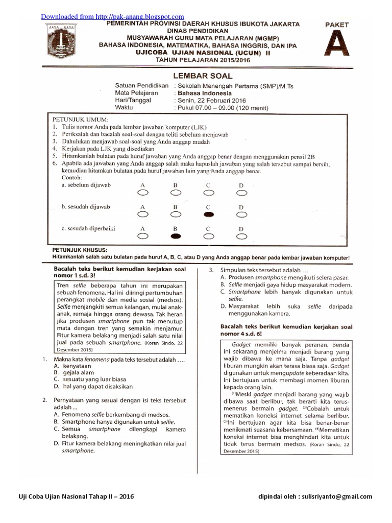 Prediksi Unbk Bahasa Indonesia Smp 2020 Try Out Ucun Dki Tahap 1 Paket A Youtube from i.ytimg.com Kunci jawaban soal bahasa indonesia paket a i. Download kunci jawaban prediksi soal dan kunci jawaban us / un matematika smp tahun 2019 atau tahun pelajaran 2018/2019 ( klikdisini ). Kependidikan.com) | kunci jawaban terdiri dari 40 soal pilihan ganda dan 5 soal uraian.