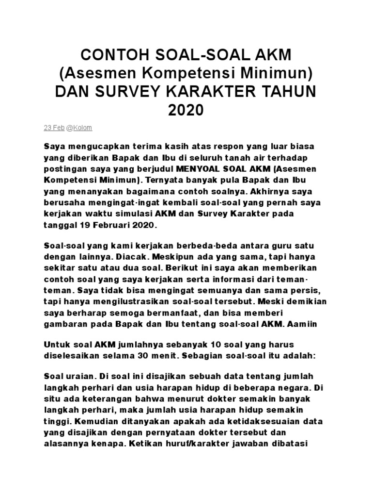 Contoh Lengkap Soal Asesmen Kompetensi Minimum Akm Untuk Guru Sd Smp Mts Sma Tahun Pelajaran 2020 2021 Kurikulum Pelajaran