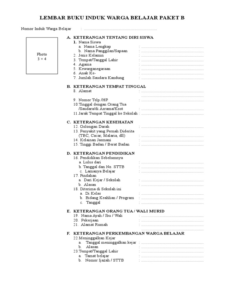 Download blangko ijazah paket c kosong word. DATA LEMBAR BUKU INDUK SISWA. Contoh Lembar Buku Induk Siswa Smk Negeri 1 Wonomerto.