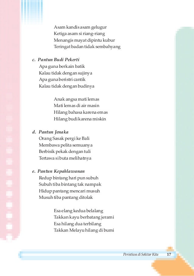 Tuliskan ciri ciri pantun jawaban belajar dari rumah tvri 6 mei. Biasanya diperankan oleh 2 3 4 orang atau lebih. Pantun Dua Kerat nasihat Bumi Gemilang Pantun Pendidikan Pantun Dua Kerat nasihat K Antologi Gema Sepi Gadis Genius Bahasa Melayu Kemahiran Hidup Pendidikan Islam Bahasa Arab.