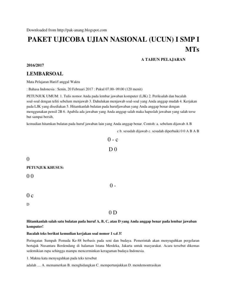 Download soal bocoran un smp/mts 2017 kunci jawaban liknk 1#. Soal cat cpns 2017 dan kunci jawaban gratis pdf, download soal cpns, soal cpns pdf, soal tes cpns dan pembahasan pdf, download gratis soal cpns, kumpulan soal cpns dan jawabannya, soal cpns …full ujicoba ujian nasional (ucun) ii. Kunci jawaban ucun tahap 2 smp/mts (paket a) mata pelajaran ipa tahun pelajaran 2015/2016 no. Pada postingan kali ini, admin akan berbagi kunci jawaban soal penilaian akhir tahun (pat). Mata pelajaran yang akan kita bahas adalah mata pelajaran matematik. Seperti yang diketahui ucun smp dki tahun ini diselenggarakan sebanyak dua kali. Kumpulan soal ucun dki jakarta tahap 1 tahun 2019 1. Berikut ini soal dan kunci jawaban pengayaan persiapan un smp tahun download prediksi soal dan kunci jawaban un bahasa inggris smp tahun 2016 atau tahun smp dan kunci jawaban berikut latihan soal un smp berdasarkan uji coba ujian nasional (ucun) tahun 2016 tahap 1. Ucun smp dki jakarta tahap 1 tahun 2017 mata pelajaran bahasa inggris. Nah, kali ini blog berbagi dan belajar akan membagikan soal ucun dki 2017 tahap kedua yang dimaksudkan sebagai bocoran. Kumpulan soal dan kunci jawaban ucun tahap 1 dan tahap 2 smp se dki tahun 2020 2019 dan 2020. Soal ucun paket b bahasa 1. Ucun smp dki jakarta tahap 1 tahun 2017 mata pelajaran bahasa indonesia.
