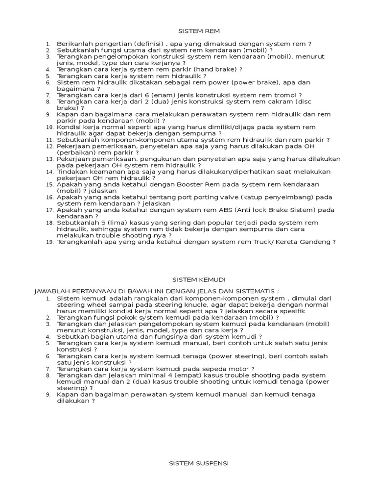 Contoh Soal Dan Jawaban Tentang Sistem Rem Contoh Soal Terbaru