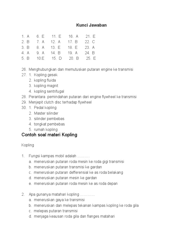 348393030 Soal Dan Kunci Jawaban Soal Engine Dan Komponennya Otomotif Kenda Pdf