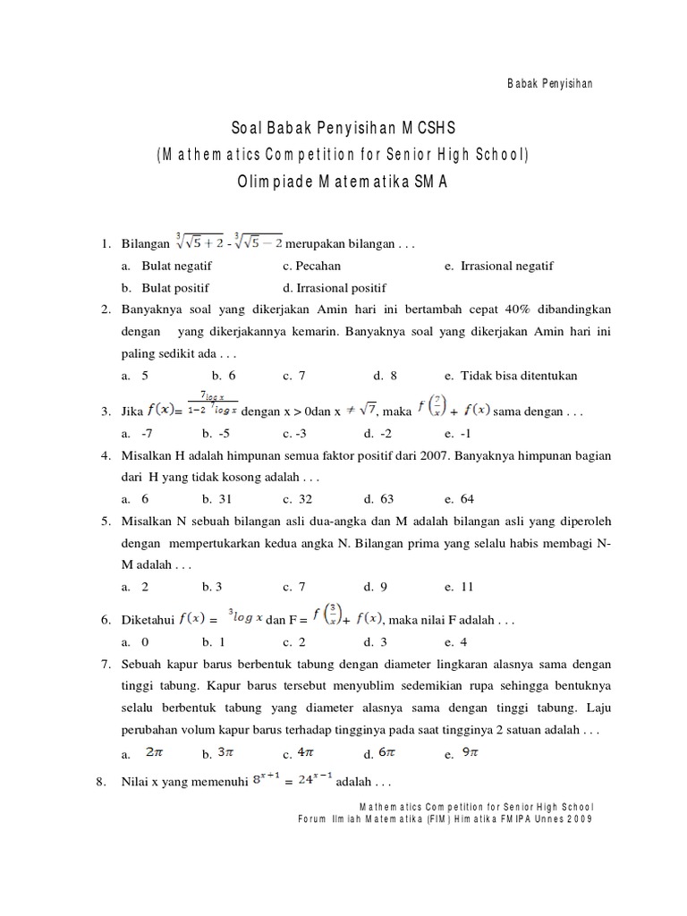55530586 Soal Dan Pembahasan Mcshs Babak Penyisihan Pdf