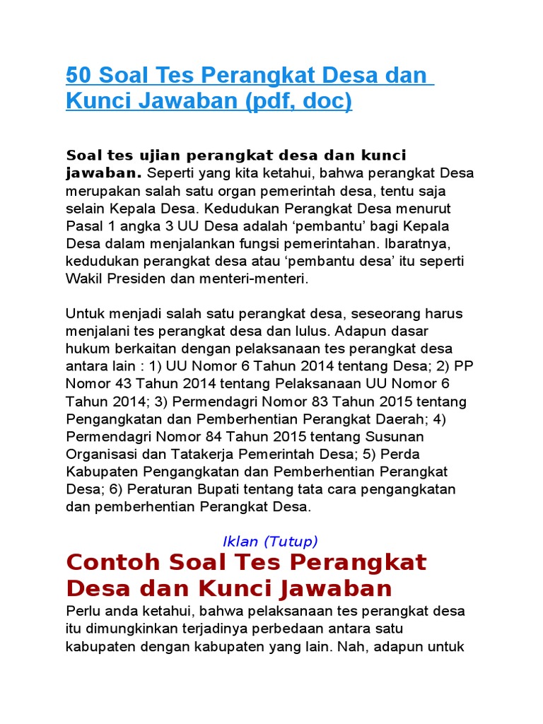 Download Soal Tes Perangkat Desa Dan Kunci Jawaban Doc Pictures