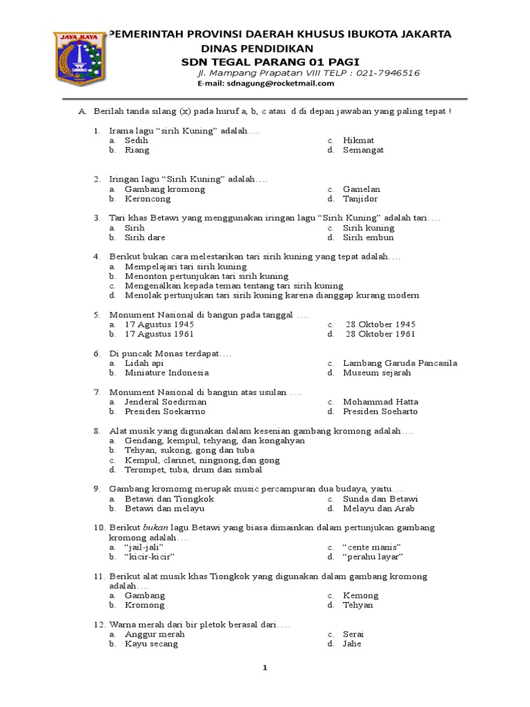 Soal Ulangan Harian Plbj Kelas 5 Semester 1 Dan Kunci Jawaban Guru Galeri