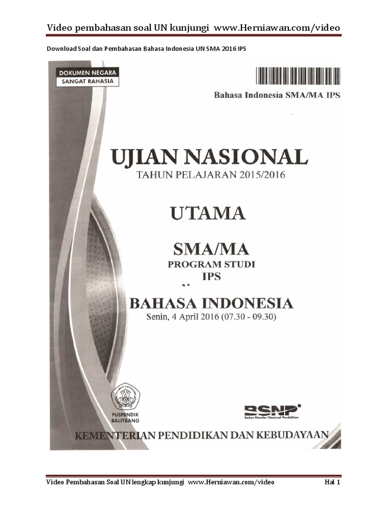 Kunci jawaban ujian nasional bahasa indonesia. Mata pelajaran bahasa indonesia tahun 2015 2016 1. Inilah soal un bahasa indonesia sma 2016 dan kunci jawaban.