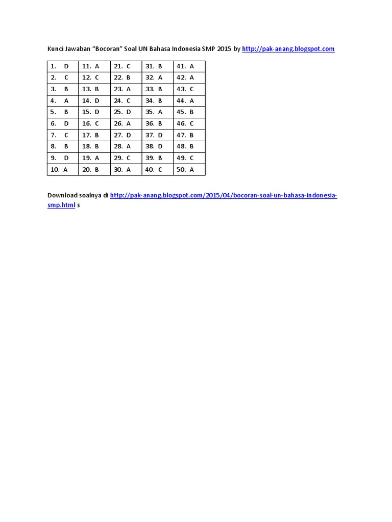 Kunci Jawaban Bocoran Soal Un Bahasa Indonesia Smp 2015 By Pak Anang Blogspot Com
