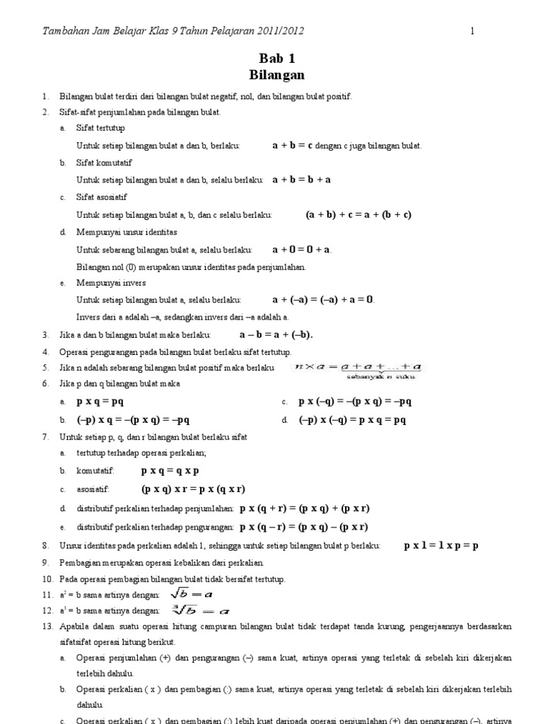 Ringkasan Materi Matematika Smp Smp Negeri 1 Situbondo