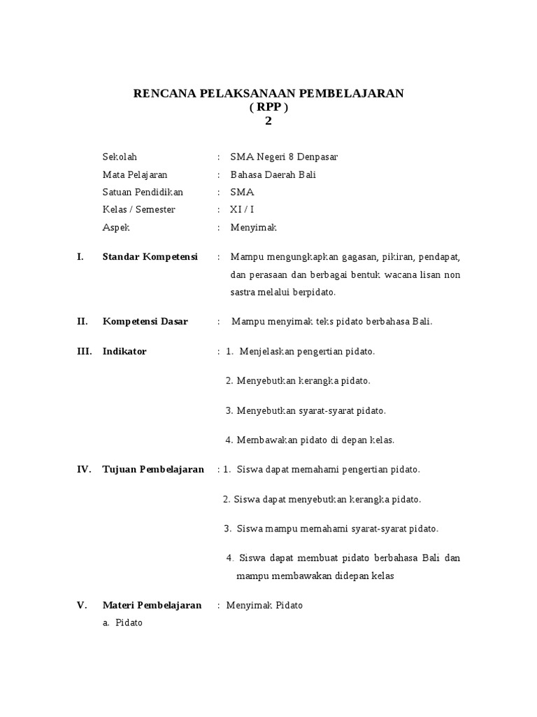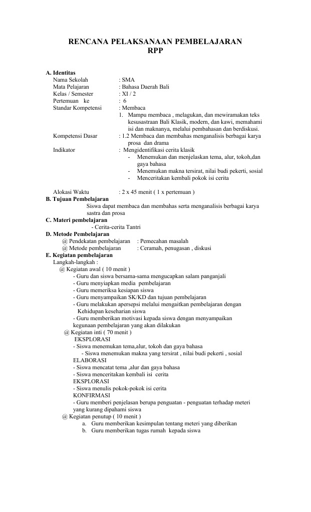 Rpp Bahasa Bali Sekolah Menengah Umum