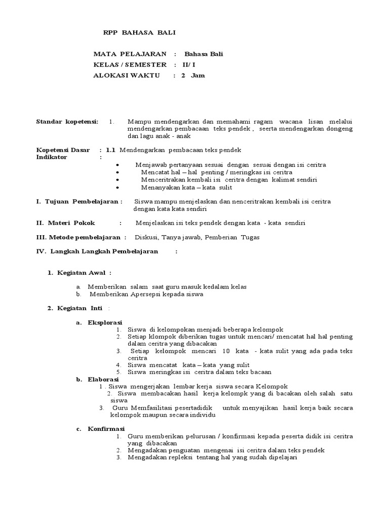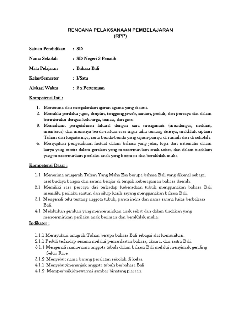 Rpp Bahasa Bali Sd K13 Guru Galeri Cute766