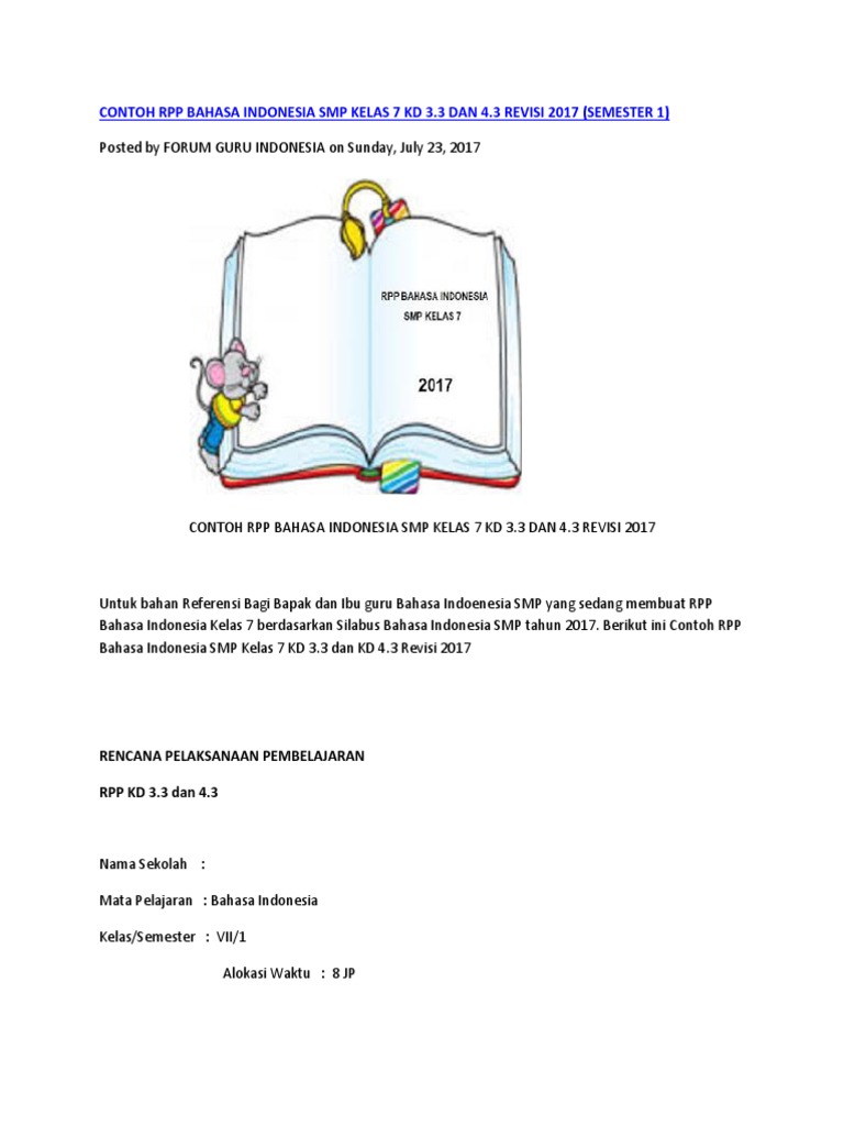 Berikut ini admin bagikan silabus dan rpp bahasa indonesia kelas 7, 8, dan smp mts kurikulum 2013. Rpp 1 lembar smp terbaru 2020dalam menulis rpp guru harus ikhlas karena penyusunan rpp merupakan kewajiban guru. Untuk guru yang membutuhkan rpp ktsp smp mata pelajaran lainnya bisa lihat melalui link berikut ini : Penjelasan dan pengertian silabus sebagai perangkat pembelajaran. Silabus pada implementasi kurikulum 2013 merupakan acuan dalam penyusunan kerangka pembelajaran untuk setiap bahan kajian mata pelajaran.