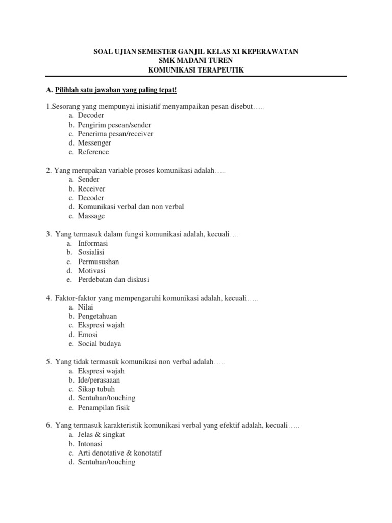 Soal Unbk Matematika Smk 2019 Dan Pembahasannya. Contoh soal soal ujian komunikasi keperawatan kuri. Berikut ini yang bukan merupakan tahap- tahap komunikasi terapeutik.