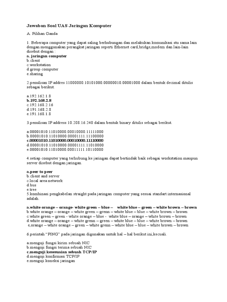 Soal Pilihan Ganda Jaringan Komputer Dan Jawabannya Python