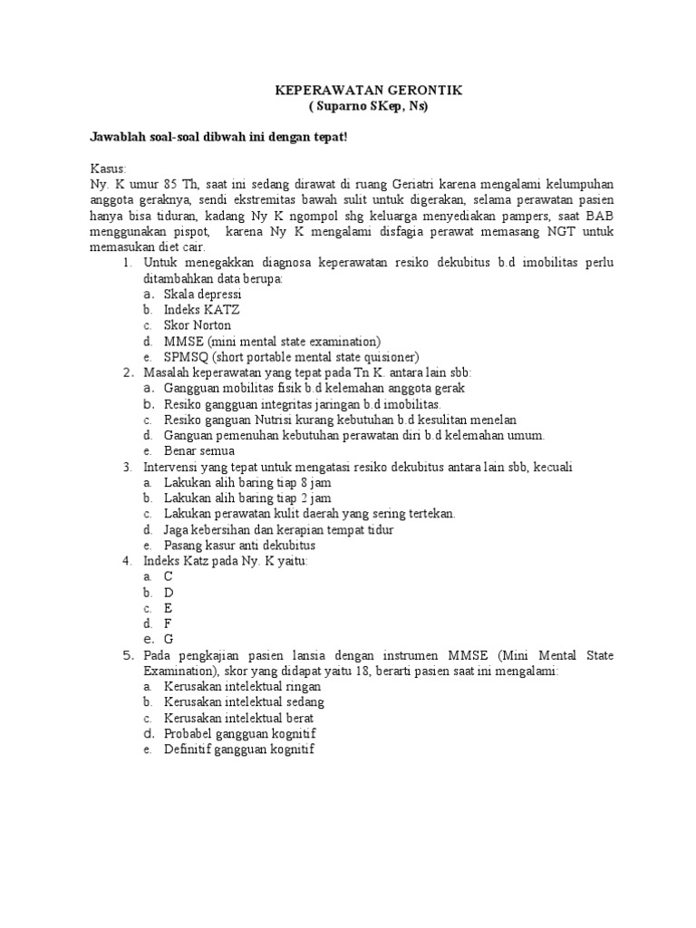 Soal Kasus Keperawatan Gerontik Dan Kunci Jawaban