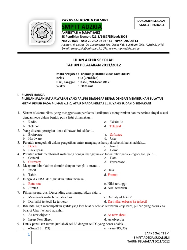Ujian Sekolah Tik Smp Dan Kunci Jawaban / Soal Ujian Sekolah Tik Smp Kelas 9 Dan Kunci Jawaban Materibelajar Co Id : Documents similar to soal try out tik sma + kunci jawaban.