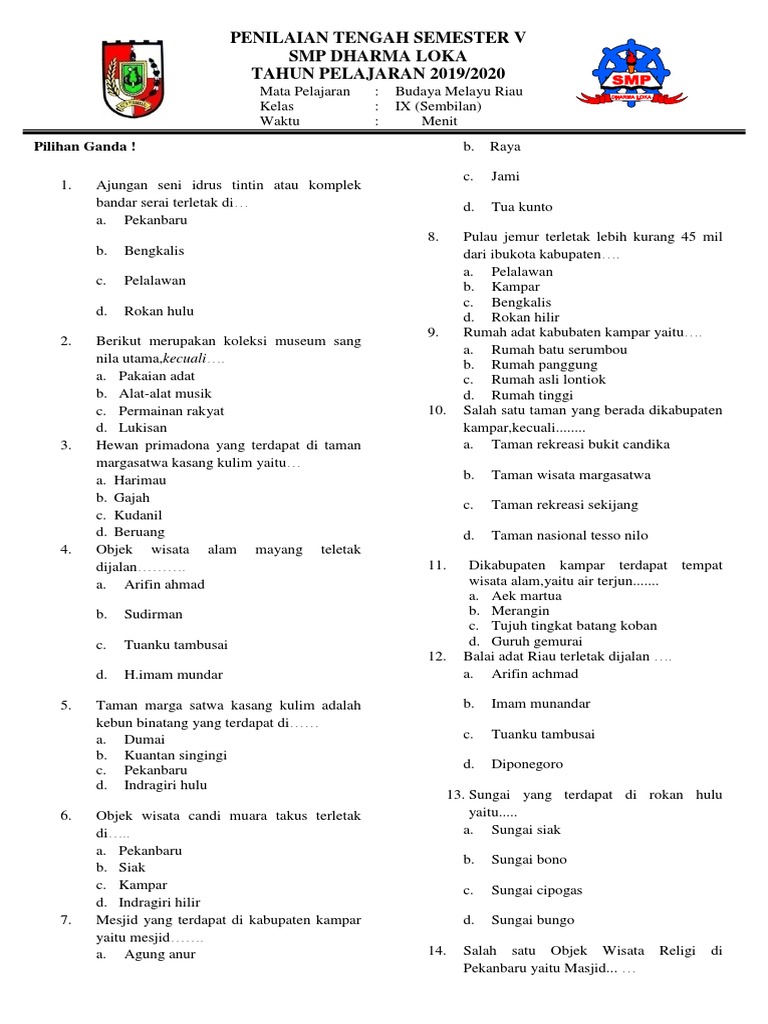 Soal Budaya Melayu Riau Kelas 6 Ktsp Semester 2