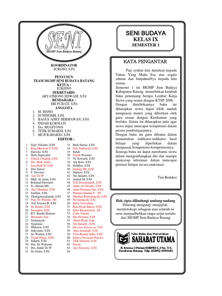 Lks seni budaya kelas ix semester i; Kunci jawaban bahasa inggris peminatan kelas 12 semester 1. Materi seni budaya kelas 9 smp/mts kurikulum 2013 edisi revisi 2018. Selain itu buku pr lks intan pariwara ini memiliki paket soal yang sangat banyak menyesuaikan jumlah kd. Jual lks seni budaya kelas 9 semester 1 k13 di lapak cv buku buku siswa seni budaya kelas vii smp kurikulum 2013.