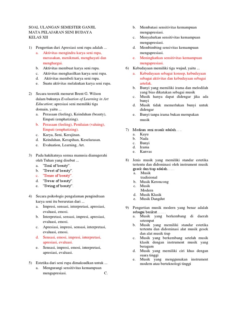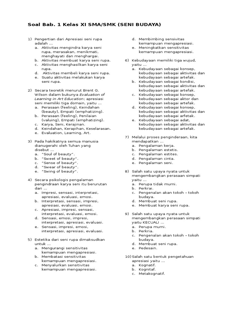 Contoh Soal Hots Seni Budaya Sma Kelas 12 Ilmusosial Id