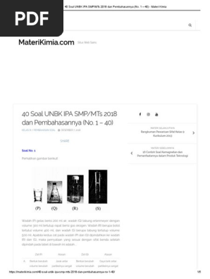 40 Soal Unbk Ipa Smp Mts 2018 Dan Pembahasannya No 1 40 Materi Kimia
