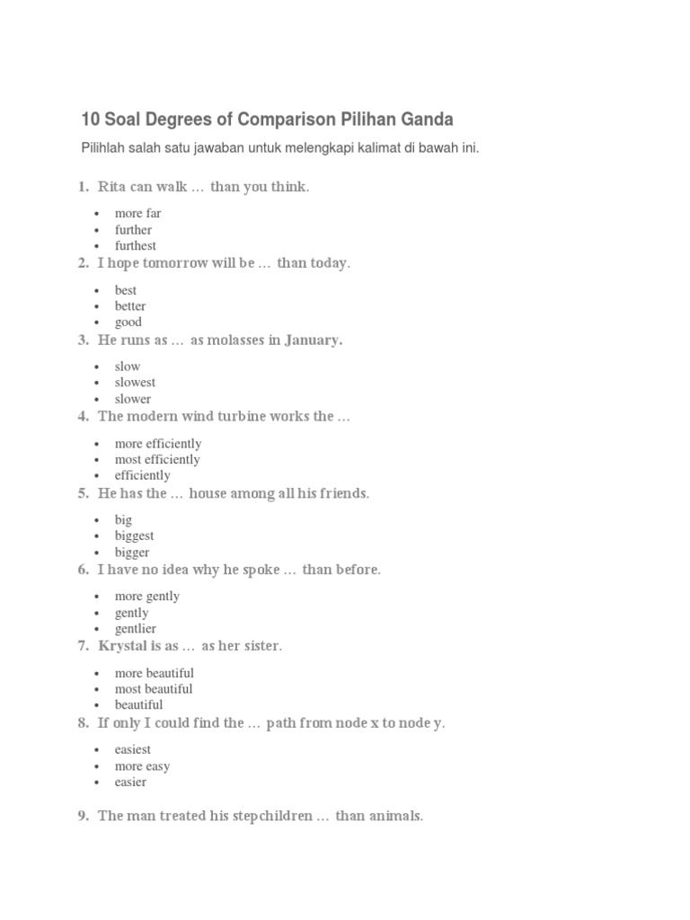 10 Soal Degrees Of Comparison Pilihan Ganda Syntax Language Mechanics