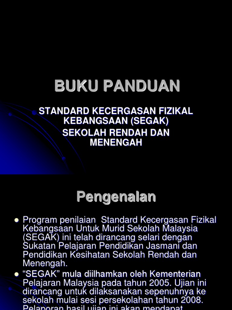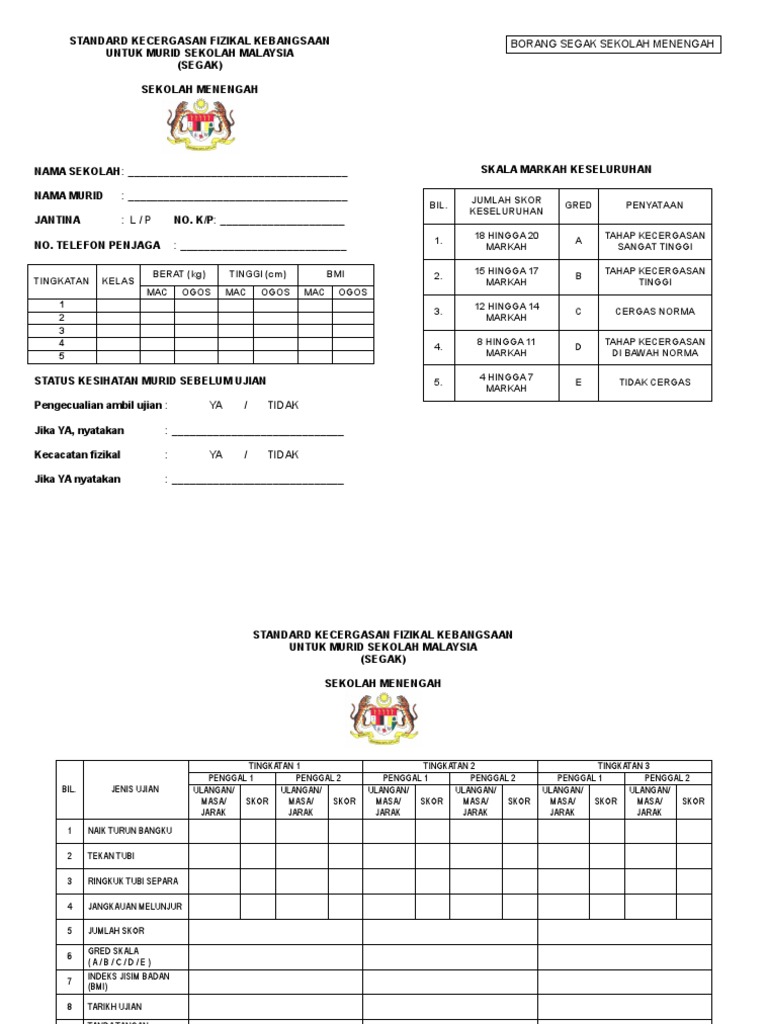 Buku Panduan Segak Flip Ebook Pages 1 46 Anyflip Anyflip. Komponen kecergasan fizikal yang diukur dalam SEGAK terkandung dalam kurikulum Pendidikan Jasmani sekolah rendah dan menengah. Ujian ini dilaksanakan kepada semua murid sekolah rendah Tahap 2 dan peringkat menengah rendah.