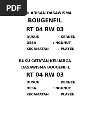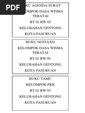 Tentang Kami Tim Pengerak Pkk Pusat. Flag for Inappropriate Content. -3 buah buku dasawisma Data Pendukung Data warga dan data keluarga 3 buah Buku Buku I Catata Keluarga Buku II Catatan Data dan Kegiatan warga Buku III.