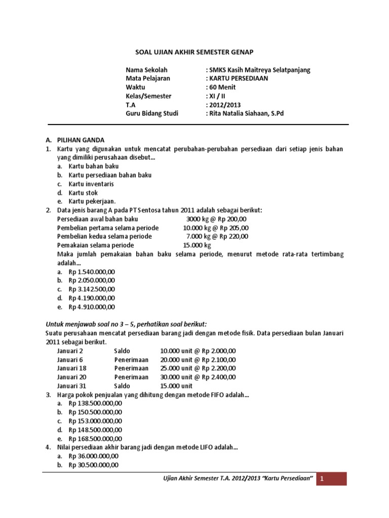 Soal Ujian Akhir Semester Genap Kartu Persediaan