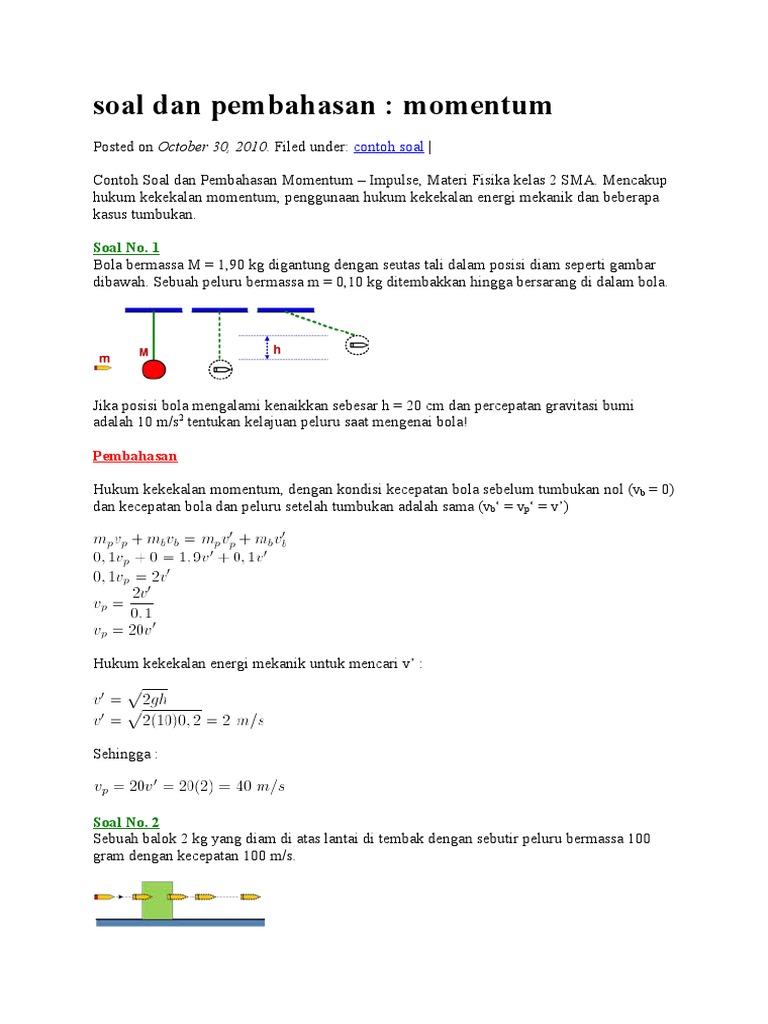 Contoh soal yang saat terjadi tumbukan ga ada yah kakReply Delete. Penyelesaian soal pembahasan. 5 Responses to Soal dan Pembahasan Impuls dan Momentum Unknown Sunday May 27 2018.
