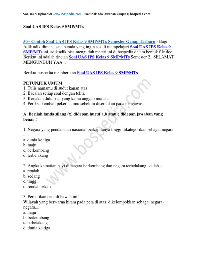 Contoh soal uas ips untuk mts. Pada postingan kali ini kami akan berbagi contoh Soal UTS Semester 2 Kelas 5 SD mata pelajaran MTK. Contoh soal ips kelas 9 semester 2 kurikulum 2013 hallo guys kita balik lagi nih pada pembahasan kali ini saya akan memberikan beberapa contoh soal daro mata pelajaran ips kelas 9 semester 2 kurikulum 2013 lengkap dengan jawabannya. Gurujugan - Contoh Kisi-kisi Soal Kunci Jawaban Ujian Madrasah UM atau Ujian Sekolah US Soal Pelajaran IPS Tahun 2021Para sahabat Guru Jugan kali ini Guru Jugan akan berbagi beberapa soal yang mungkin akan dibutuhkan para guru untuk bahan referensi membut soal UM.