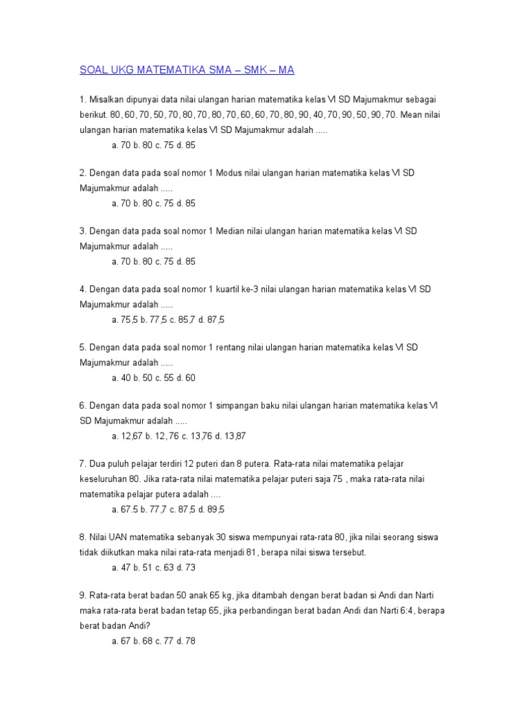 Pada persalinan anak besar sehingga untuk mencegah. Soal unbk matematika sma lengkap dengan jawaban dan pembahasannya. Contoh soal ukg sma 2017 dan kunci jawabannya ini merupakan soal ukg terbaru untuk guru sma dan ma yang dapat anda download secara gratis.