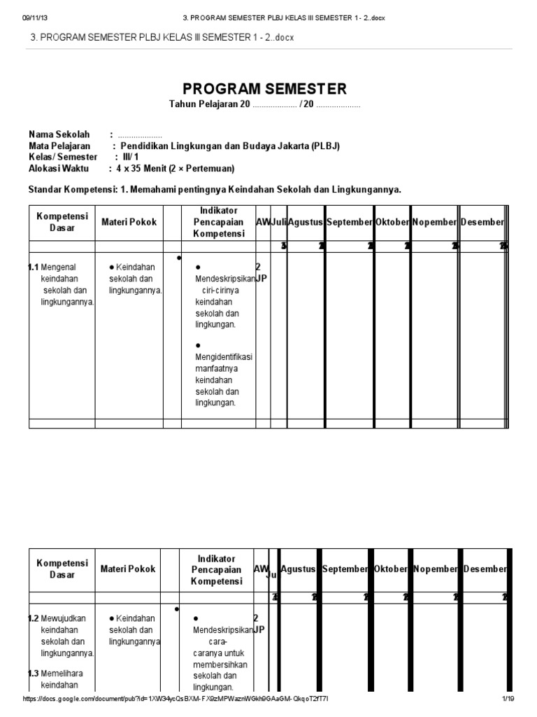 3 Program Semester Plbj Kelas Iii Semester 1 2