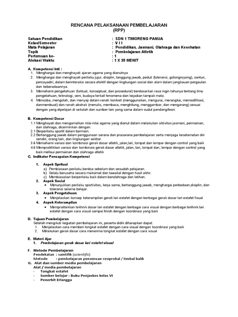 Rpp Pembelajaran Atletik Lari Estafet Fikran