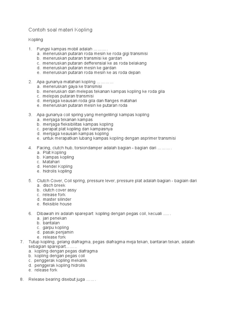 Soal Dan Jawaban Sistem Kopling Sepeda Motor