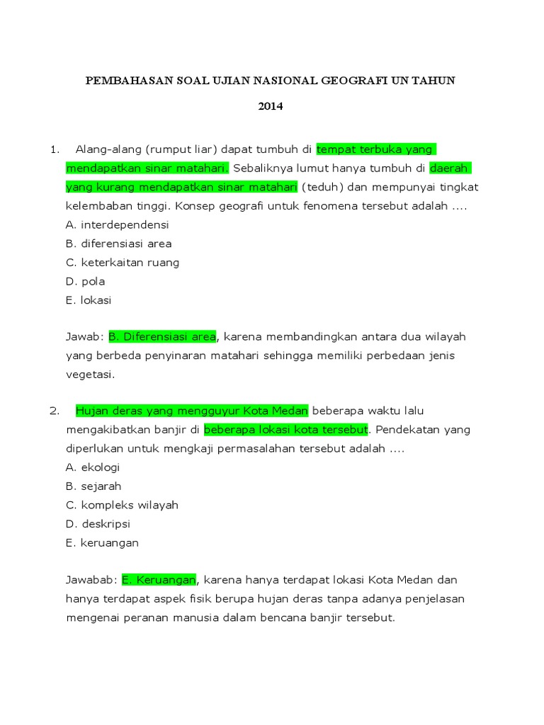 Soal Un Geografi 2014 Dan Kunci Jawaban Guru Galeri