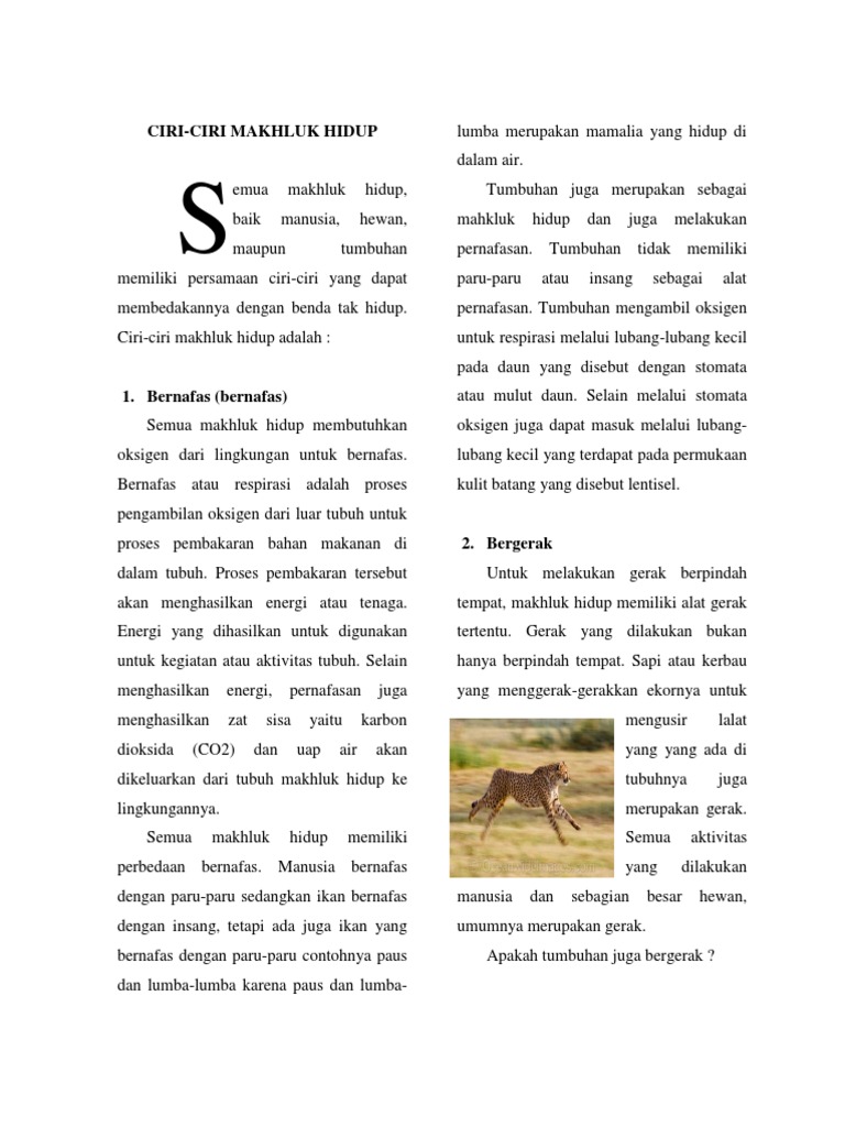 Bahan Ajar Tentang Ciri-ciri Makhluk Hidup