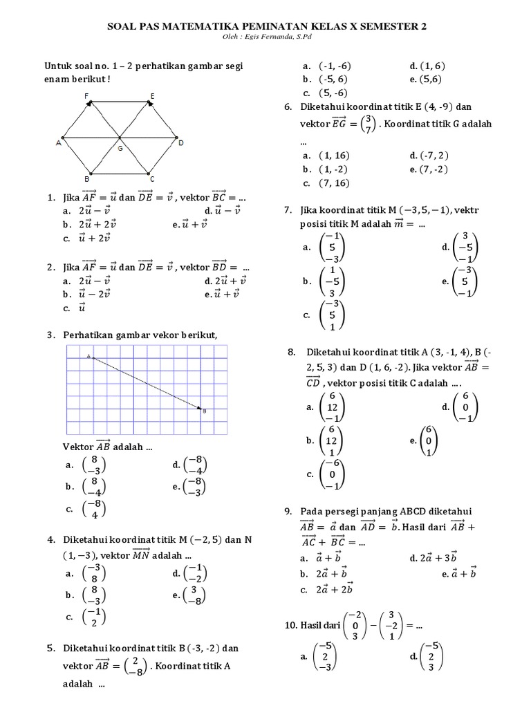 Selain kunci jawaban artikel ini juga berisi link pembahasan tentang materi tersebut. Soal vektor matematika kelas 10 pdf. 20210302 Tersedia juga kumpulan soal-soal matematika peminatan kelas 10 untuk setiap bab yang bisa kamu download dalam format PDF sebagai bahan latihan soal ulangan.