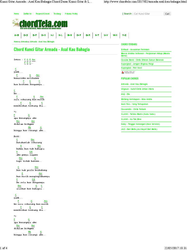 Armada - Asal Kau Bahagia Chord - Malay Gitar Kord Tab Chords Easy Chord Lyrics. C Dm katakanlah sekarang E Am bahwa kau tak bahagia F CE aku punya ragamu Dm G tapi tidak hatimu. 4 contributors total last edit on Oct 04 2020.