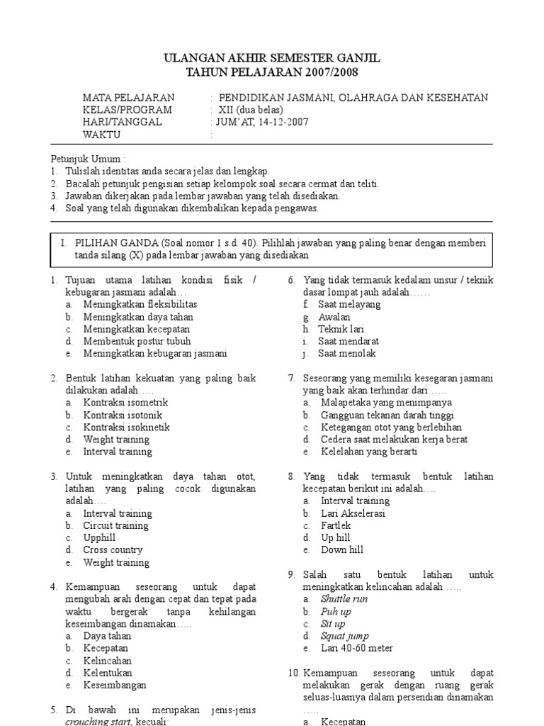 20200906 Berikut 54 soal kebugaran jasmani beserta jawaban. Soal Kebugaran Jasmani Beserta Jawaban Bagi para siswa ataupun guru yang sedang membutuhkan soal penjas materi Kebugaran Jasmani. Namun sebelum membahas macam-macam kebugaran jasmani perlu diketahui terlebih dahulu pengertiannya.