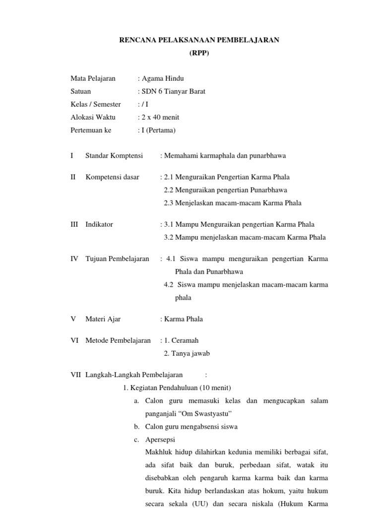 Contoh RPP 1 Lembar Bahasa Indonesia. Rpp k13 agama hindu sd. Download RPP dan Silabus KTSP Terbaru Kelas 1 6 SD.