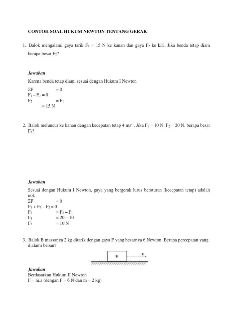 Contoh Soal Dan Jawaban Hukum Newton Siswapedia
