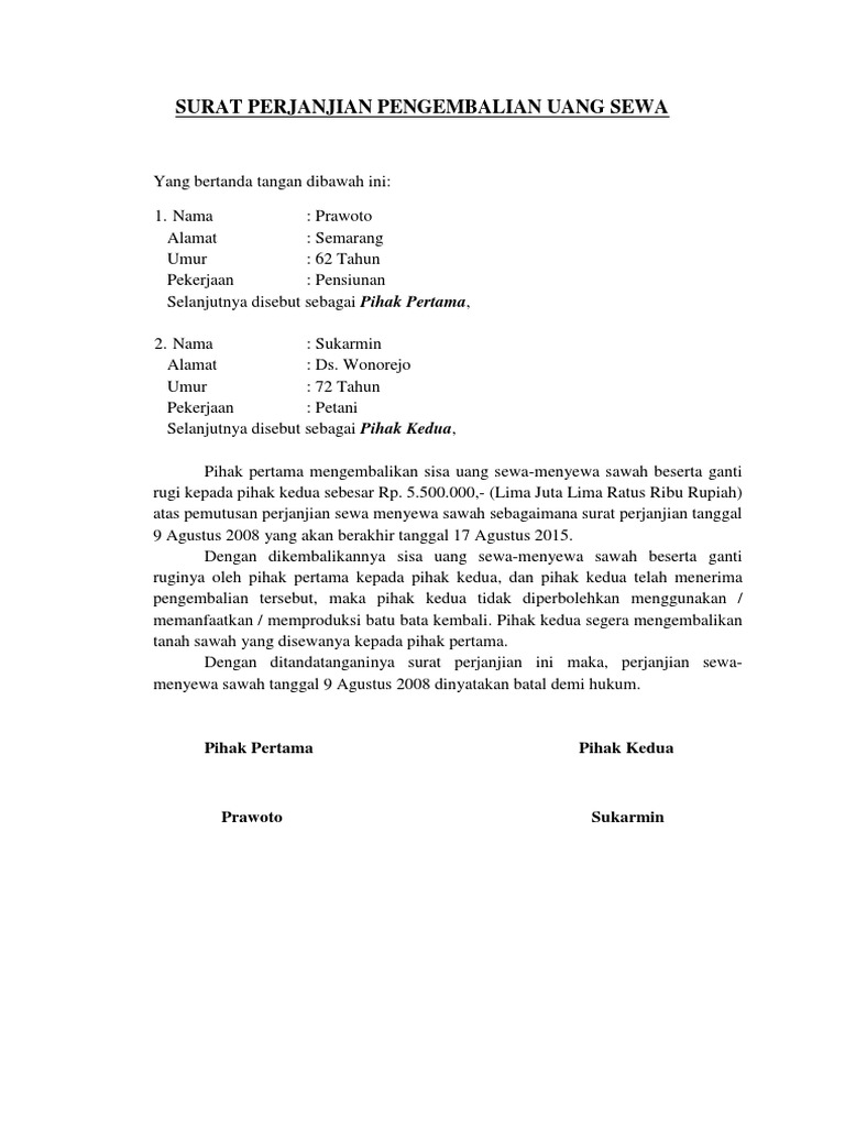 Contoh surat perjanjian pengembalian uang. Alianyang Gg Sawi No 15 RT 004 RW 002 Kel Jawa Kec. Hal ini karena mengingat bahwa orang ada berbagai bentuk.