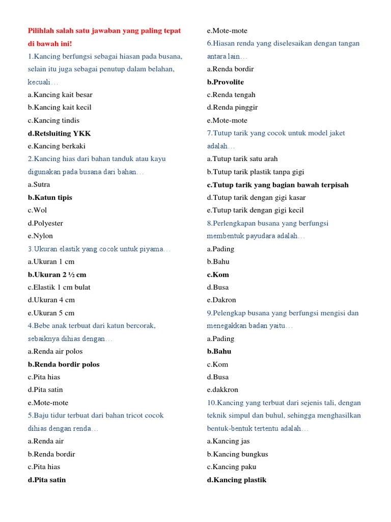 Contoh Soal Seleksi Blk Kejuruan Menjahit Soal Baru